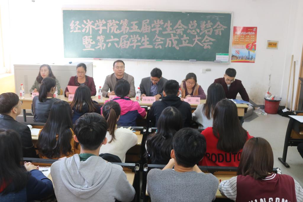 (通讯员:刘如� 杨玉琪)2017�10�24日�25日中�12:30,经济学院第五届学生会总结会暨第六届学生会成立大会分别在舜耕校�2309、圣井校�5306教室举行。院党委书记吴红文,副书记任海伦,院团委就业办主任裴斐,辅导员付雯、朱海林出席,第五届学生会主席团、部长和第六届学生会全体成员参加会议。本次会议由院团委书记兼学工办主任周新秀主持�