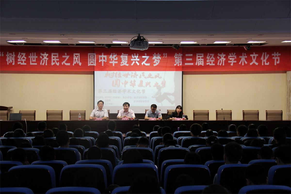 经济学术文化节是在整合各方面资源基础上,由学校多个部门联合主办的具一定学术性、艺术性和文化内涵的校园文化品牌活动,旨在开阔同学的学术视野,引导和鼓励同学观察社会经济现象,明晰当前经济形势,透析本质问题,拓展经济学科理论知识的深度和广度,激发同学学习经济学科知识的热情,培养同学们博学好问、勤学善思、明辨笃行、志存高远的学术态度,树立经济人的主人翁意识、历史使命感和时代责任感,创设浓郁的学术文化氛围,倡导和推动优良校风、学风建设,进一步践行社会主义核心价值观。校学生工作部(处)、校团委和经济学院将在今后一个月内向全校师生奉献演讲比赛、辩论赛、合唱大赛、学术沙龙、经济论坛、手抄报设计大赛、经济学科知识竞赛、三农印象摄影展等八项精彩活动�