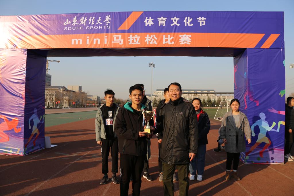 (通讯员:朱雅� 李佳宁)12�12日下�14�00,山东财经大学体育文化节迷你马拉松比赛于圣井校区举行,各学院代表队参加比赛。我院马拉松队员勇往直前,全力以赴,勇夺本次迷你马拉松比赛冠军�