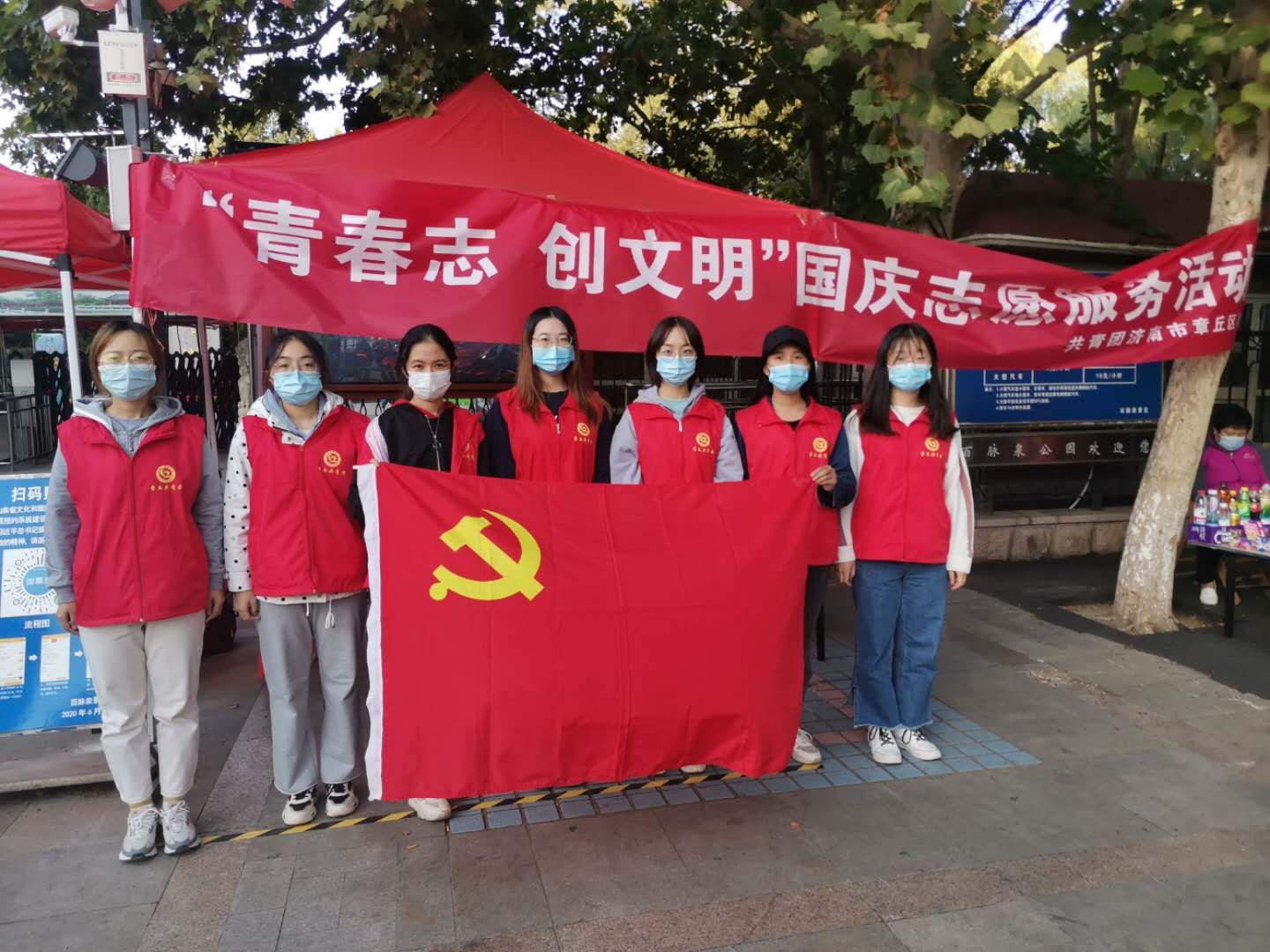 (通讯员:)为进一步发挥青年志愿者在服务党政中心、服务城市品质提升中的示范引领作用,进一步强化文明意识,响应共青团章丘区委、章丘区志愿者协会开展“文明同行·志愿有我”志愿服务活动,国庆节期间,我院组织青年志愿�80余人次到章丘区百脉泉风景区、危山风景区、朱家峪风景区和文博中心图书馆进行志愿服务�