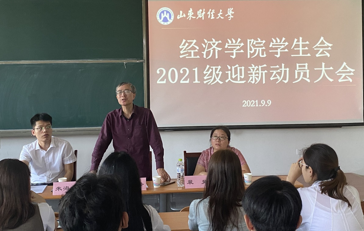 (通讯员:叶雨� 刘毓菲)9�9日中午,经济学院于圣井校�7号教学楼召开经济学院2021级迎新动员大会。经济学院党委副书记高峰、学工办主任裴斐、新生辅导员朱海林出席会议。会议由裴斐主持,学院学生会全体迎新工作人员到场参加�