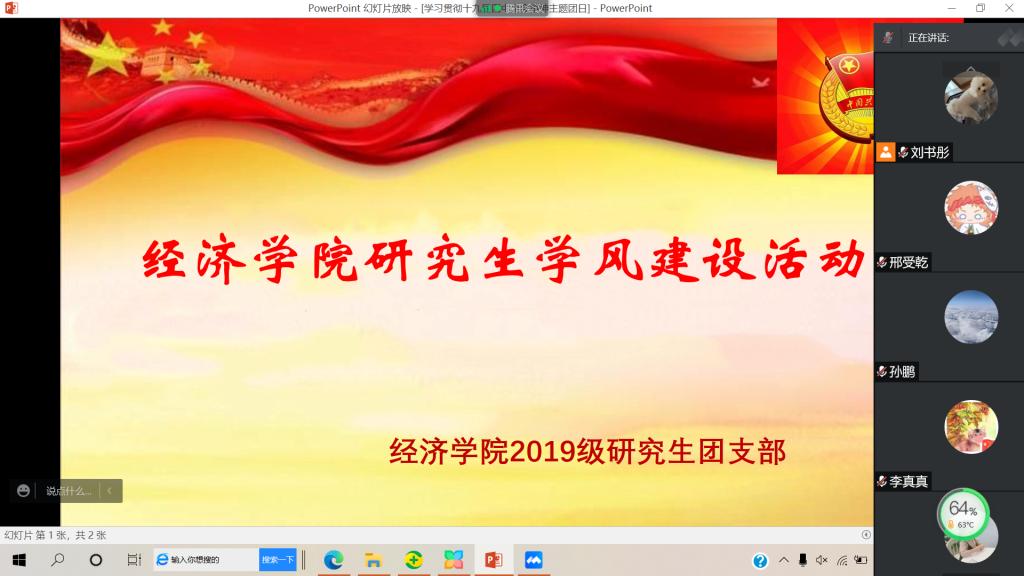 (李淑楠 吴婷婷)为深入贯彻党的十九届六中全会、全国高校思政工作会议、全国教育大会、全国研究生教育会议等精神,提升我院研究生学习的自觉性和积极性,形成争优创先的整体氛围,经济学院�2021�11�6日至11日组织全体研究生开展了“学风建设大讨论”主题团日活动。活动由各班团支部书记主持�
