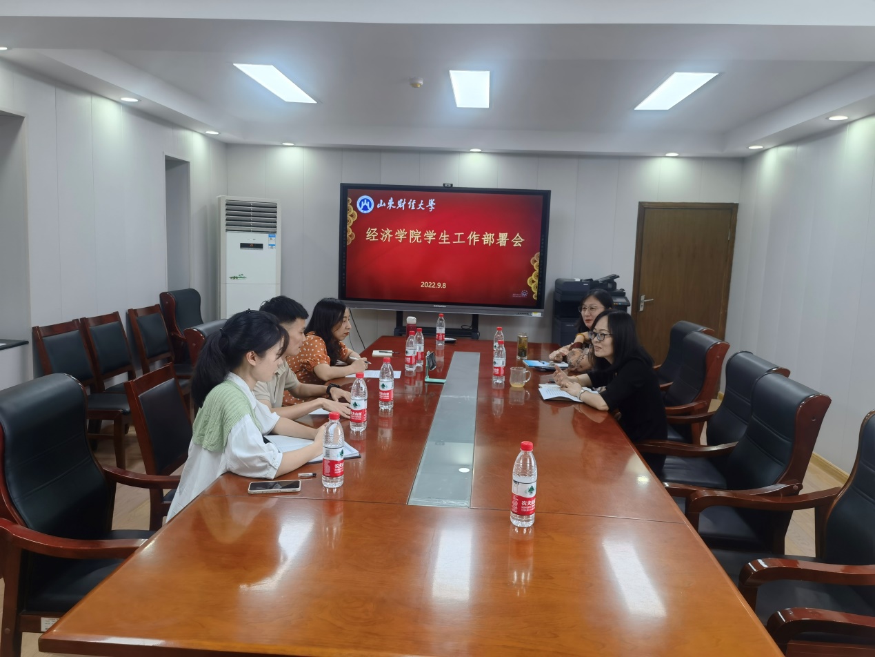 (通讯员:付雯�9�9日,经济学院在舜耕校区会议室举办新入职辅导员培训会暨新学期学生工作部署会。学院党委副书记李冰封、陈静出席会议,院学工办各辅导员参加会议,会议由李冰封主持�
