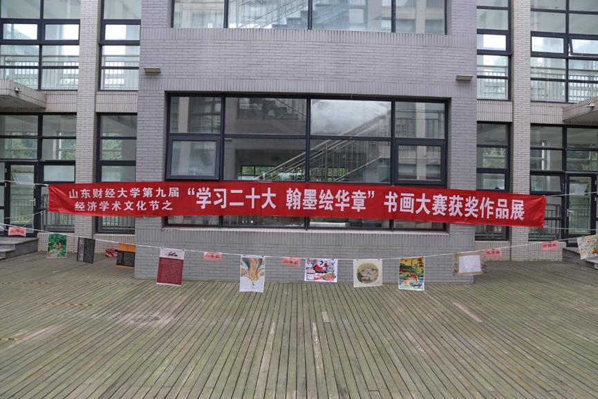 (通讯员:付雯 高迪)为深入学习、宣传和贯彻党的二十大精神,引导广大青年学生坚定不移听党话、跟党走,进一步激发广大学生坚定理想信念,弘扬爱国主义精神�4-5月,校学生工作部(处)、校团委、经济学院共同举办山东财经大学第九届经济学术文化节之“学习二十大翰墨绘华章”书画大赛,�6�2日—�6�4日在圣井校区五号教学楼举办获奖作品展�