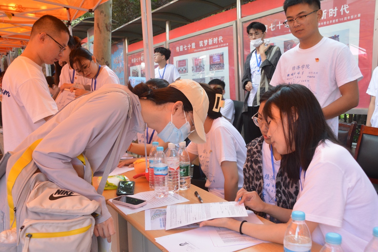 志愿者们往返于报到点与宿舍楼,为新生答疑解惑,搬运行李。“欢迎加入经济学院”“我帮你拿行李”“宿舍楼请向这边走”,每一句亲切话语,每一次热情引导,都是经济学院学长学姐对新生最真挚的关怀�