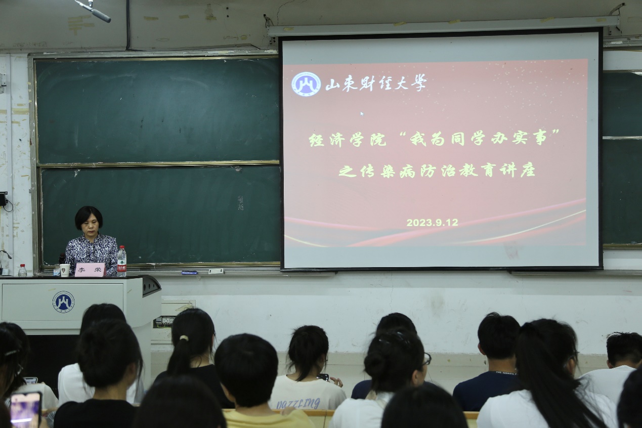 (通讯员:赵普 李亦菲)为落实校园传染病防控工作,帮助新生培养良好的生活习惯和健康意识,9�12日晚,经济学院于圣井校区5号教学楼举办“我为同学办实事”之传染病防治教育讲座。讲座特邀山东财经大学校医院副院长李荣主讲,经济学院全�2023级新生参加。会议由经济学院教师刘传明主持�