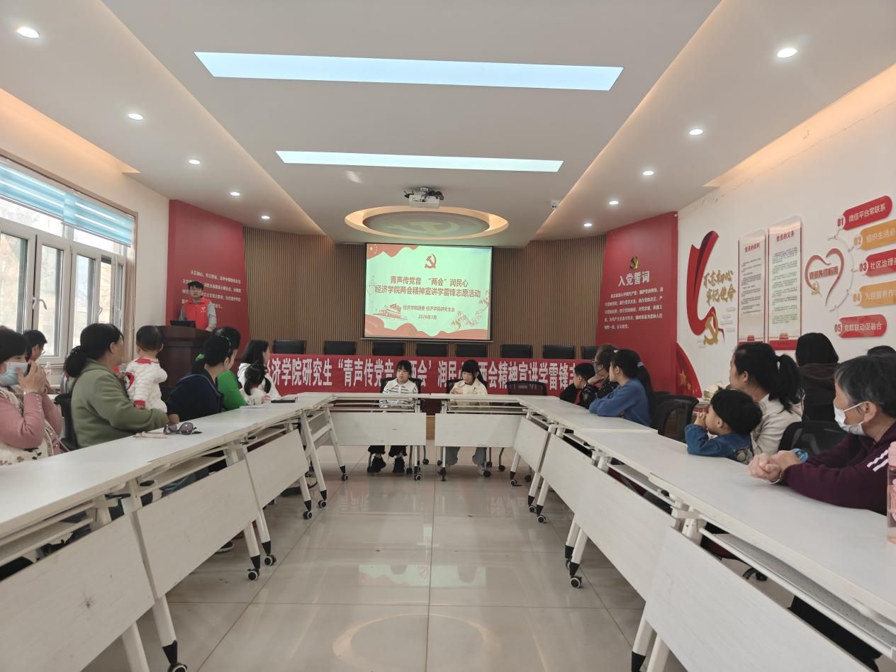 研究生志愿者们以专业的经济学视角,用通俗易懂的方式解读两会精神,让社区居民读懂国家发展蓝图,感受政策民生温度。志愿者首先围绕两会精神核心要义,从“十五五”规划的战略部署切入,阐述了科学规划对国家经济社会发展的重要意义,讲解了政府工作报告中“十四五”时期经济社会发展的主要成就、“十五五”时期主要目标和重大任务�2026年经济社会发展总体要求和政策趋向,以及2026年政府工作十大任务。志愿者结合宏观经济政策趋向展开,用“跳起来摸高、稳得住步伐”的生动表述,解读了目标设定的务实性与长远性,介绍了积极的财政政策与适度宽松的货币政策的具体举措,以及政策向民生领域、科技创新、中小微企业的倾斜方向,让居民清晰了解国家稳增长、惠民生的政策发力点。志愿者从经济学角度解读了新质生产力与共同富裕的核心内涵,讲解了科技创新与产业升级融合发展的重要路径,以及完善分配制度、提高低收入群体收入、扩大中等收入群体的民生举措。针对居民提出的消费保障、社会保障等问题,志愿者们结合两会中“投资于人”的理念,从就业优先、社保体系完善等方面逐一解答,让居民明晰民生保障背后的经济学逻辑,感受到国家推动实现共同富裕的坚定信念�
